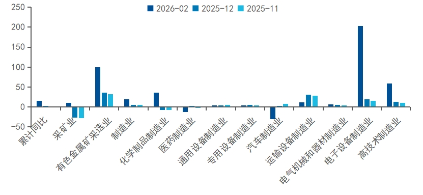 除前文提到的资金净转向、财报季催化,沪深300的估值压力正逐渐缓解。截至3月底,沪深300指数的市净率分位数已从2025年末的61.75%降至42.75%,处于历史中等偏低水平;近十年市盈率分位数亦降至76.72%,较年初有所消化。此外,经济复苏趋势也为A股后续走势提供了支撑。2月的中国工业企业利润数据表现强劲,累计同比增长15.2%,反映出国内工业生产韧性增强。作为覆盖各行业龙头的沪深300指数,其成分股有望受益于宏观经济的边际改善。