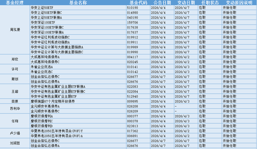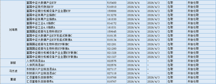 新基金经理上任方面,其中4.4-4.7日有49只基金产品发布基金经理任职公告,涉及14名基金经理。东财基金冯杰波现任基金资产总规模为2.53亿元,管理过的基金都为混合型基金,任职期间回报最高的产品是东财数字经济混合发起式A(015096),为混合型基金,在任职的1年又111天时间内获得95.82%的回报,至今仍在管理该基金。冯杰波新任东财新兴产业锐选混合A、东财新兴产业锐选混合C这两只基金产品的基金经理。