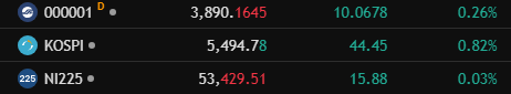 从盘面来看,日经225指数最终几乎收平,报53429.51点,小幅上涨0.03%;韩国KOSPI则收涨0.82%,报5494.78点,明显跑赢日本市场。