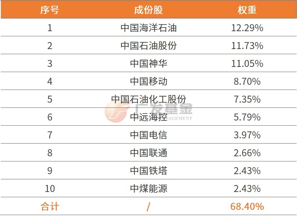 在权重股方面,该指数的前十大权重股均为能源、航运、通信等领域的央企。