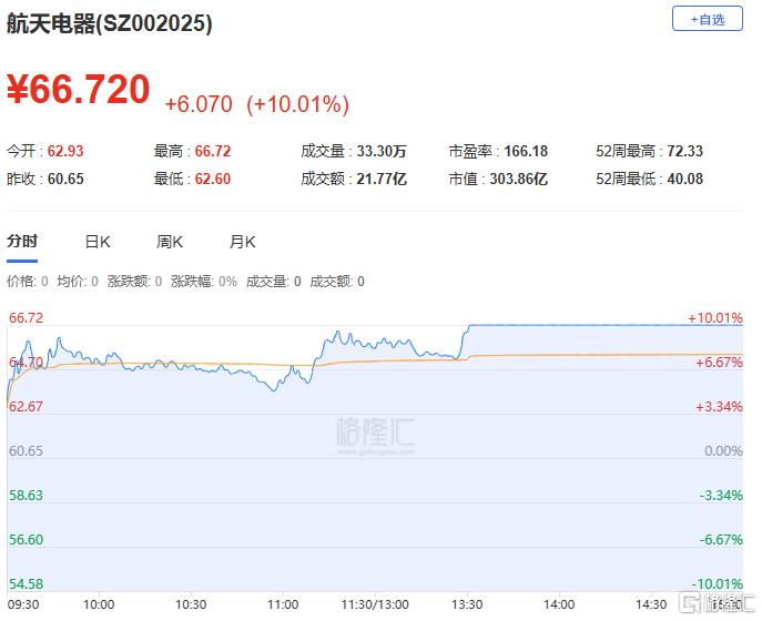 航天电器:今日涨停,全天换手率7.34%,成交额21.77亿元,振幅6.58%。机构净买入2.06亿元,营业部席位合计净卖出2553.00万元。