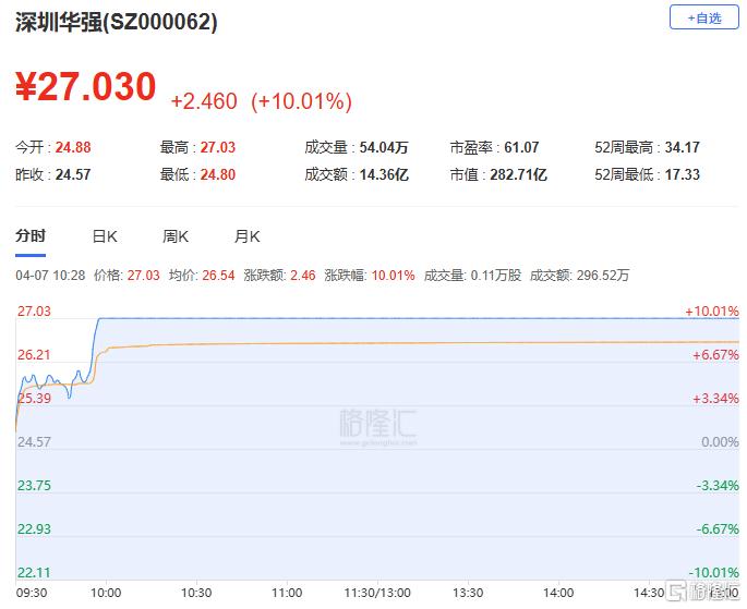 深圳华强:今日涨停,全天换手率5.17%,成交额14.36亿元,振幅8.99%。机构净买入7547.21万元,营业部席位合计净买入8351.36万元。