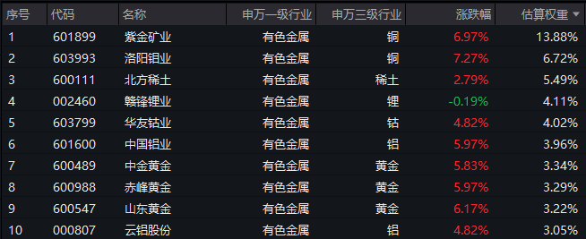 【有色ETF汇添富(159652)标的指数前十大成分股】