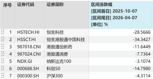 近6个月以来,受美伊冲突反复和外卖大战、前期涨幅显著等因素综合影响,港股科技、港股创新药、港股消费集体承压。恒生科技ETF汇添富(513260)标的指数回调超28%,港股通科技ETF汇添富(520980)标的指数回调超34%,跌幅远超科创50、纳斯达克100、沪深300等市场主流指数。