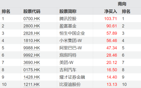 资金持续涌入港股科技板块。从近1个月南向资金表现看,腾讯控股以超103亿港元位居净买入榜首,小米集团-W、阿里巴巴-W、美团-W等港股科技龙头股同样位居南向资金净买入前十。