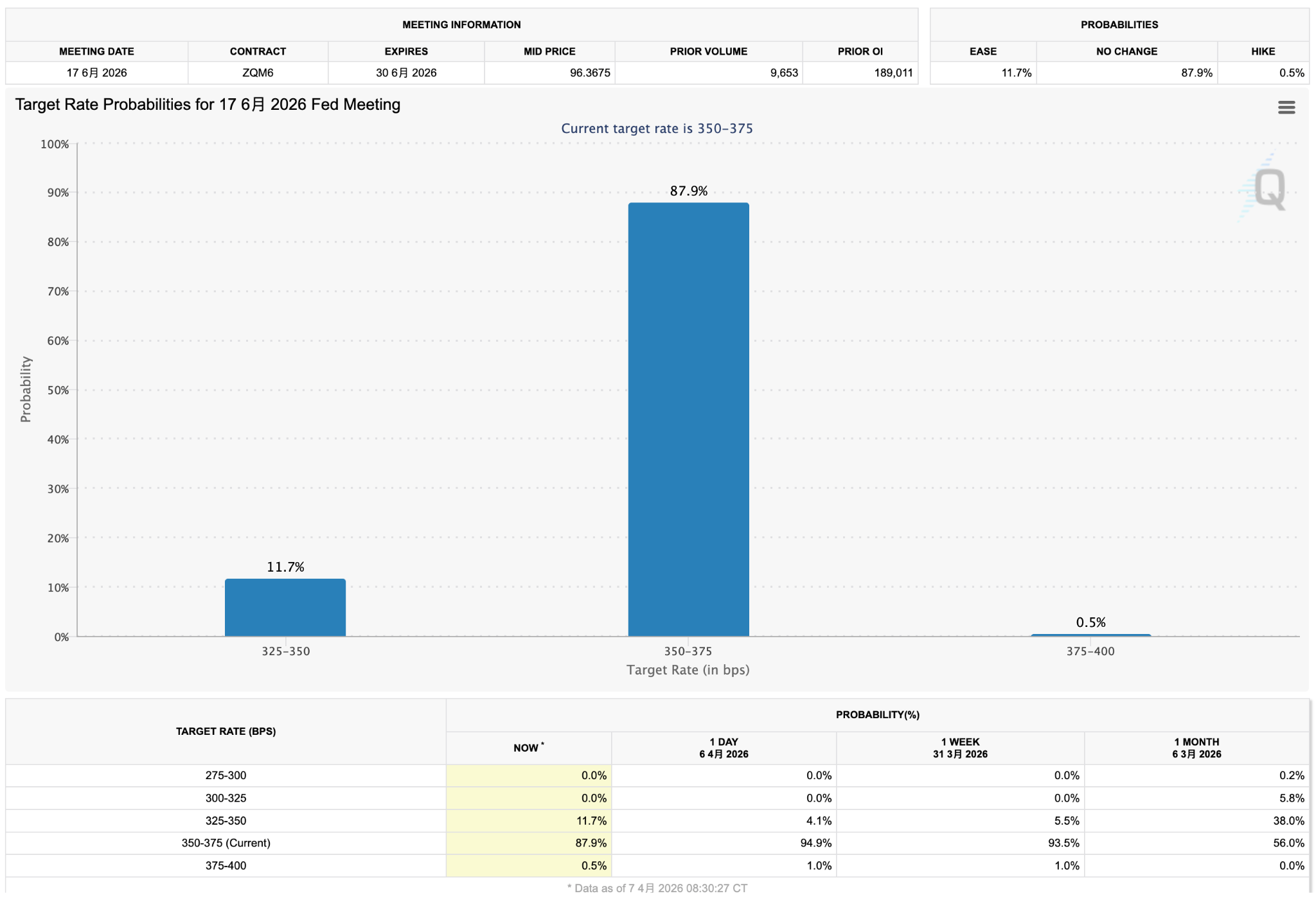 【市场定价美联储6月降息相较一天前有所提升,来源:www.cmegroup.com】