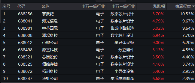 【科创芯片ETF汇添富(588750)标的指数前十大成分股】