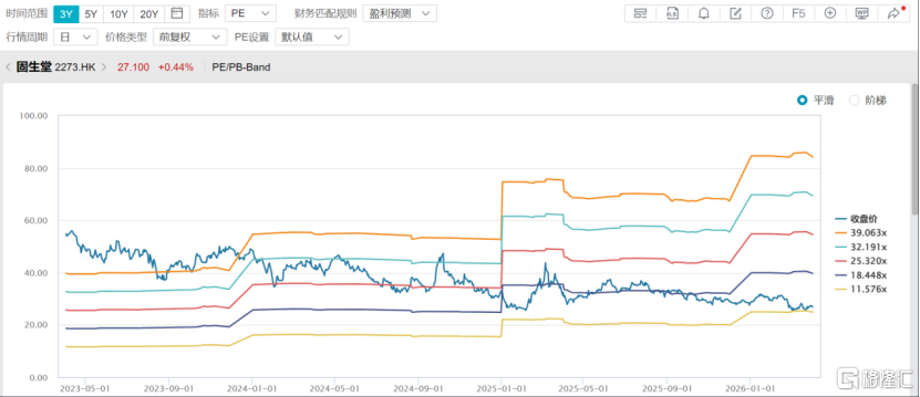 根据WIND数据显示,截至4月2日,固生堂股价27.10港元,PE(TTM)16.3倍,2026年预测PE约11.2倍。公司预计2026 年收入增速有望重回15%以上,估值水平具备较强吸引力。