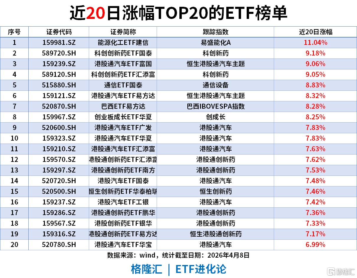 近20日涨幅(截至2026-04-08)