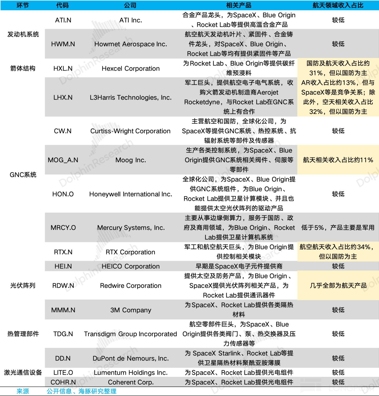 (1)首先是火箭可回收技术及极限降本需求下,所依附的核心零部件,如发动机、箭体材料、GNC系统、以及3D打印等制造技术。