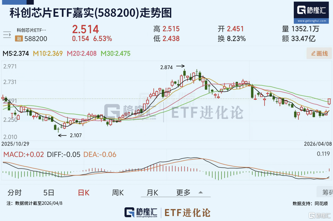 而科创芯片ETF嘉实(588200)跟踪的上证科创板芯片指数,涵盖的均为高成长属性的芯片企业,直接受益于风险偏好回升与资金回流,同步受益于短期行情爆发。
