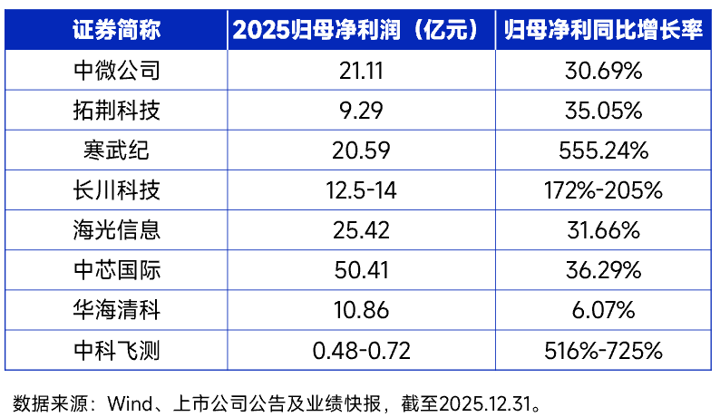 叠加中东局势反复,目前市场正迅速向半导体设备业绩确定性兑现的基本面主线回归。中证半导目前已披露2025年业绩的前十大均实现净利同比高增。
