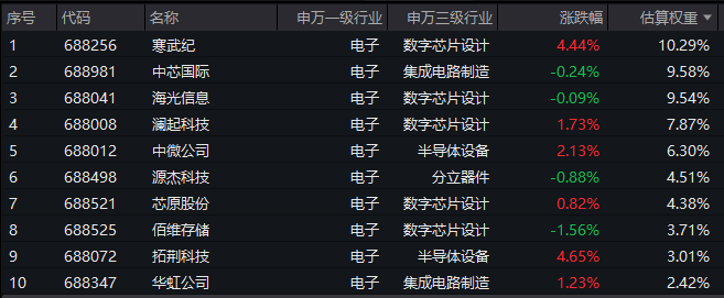 【科创芯片ETF汇添富(588750)标的指数前十大成分股】