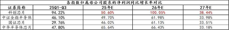 科创芯片ETF汇添富(588750)标的指数2025年前三季度净利润增速高达94%,2026年全年预计归母净利润增速高达100%,大幅领先于同类,成长性更强!