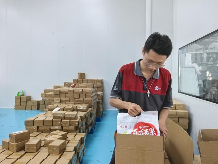作为季节性、节庆性特征较为明显的产品,夏威夷果在寄递端也有较强的阶段性出货特征。在圆通云南普洱网点,开口果、果仁、礼盒等不同产品会根据货型做好分类理货,并结合当天车次安排贴单、装车。进入春节等发货旺季后,针对礼盒件集中放量的情况,网点也会相应加强场地组织和发运衔接,尽量保障货品及时出场、按序发运。