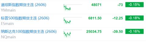 目前,道指期货、标普500期货和纳斯达克100期货均纷纷转跌。