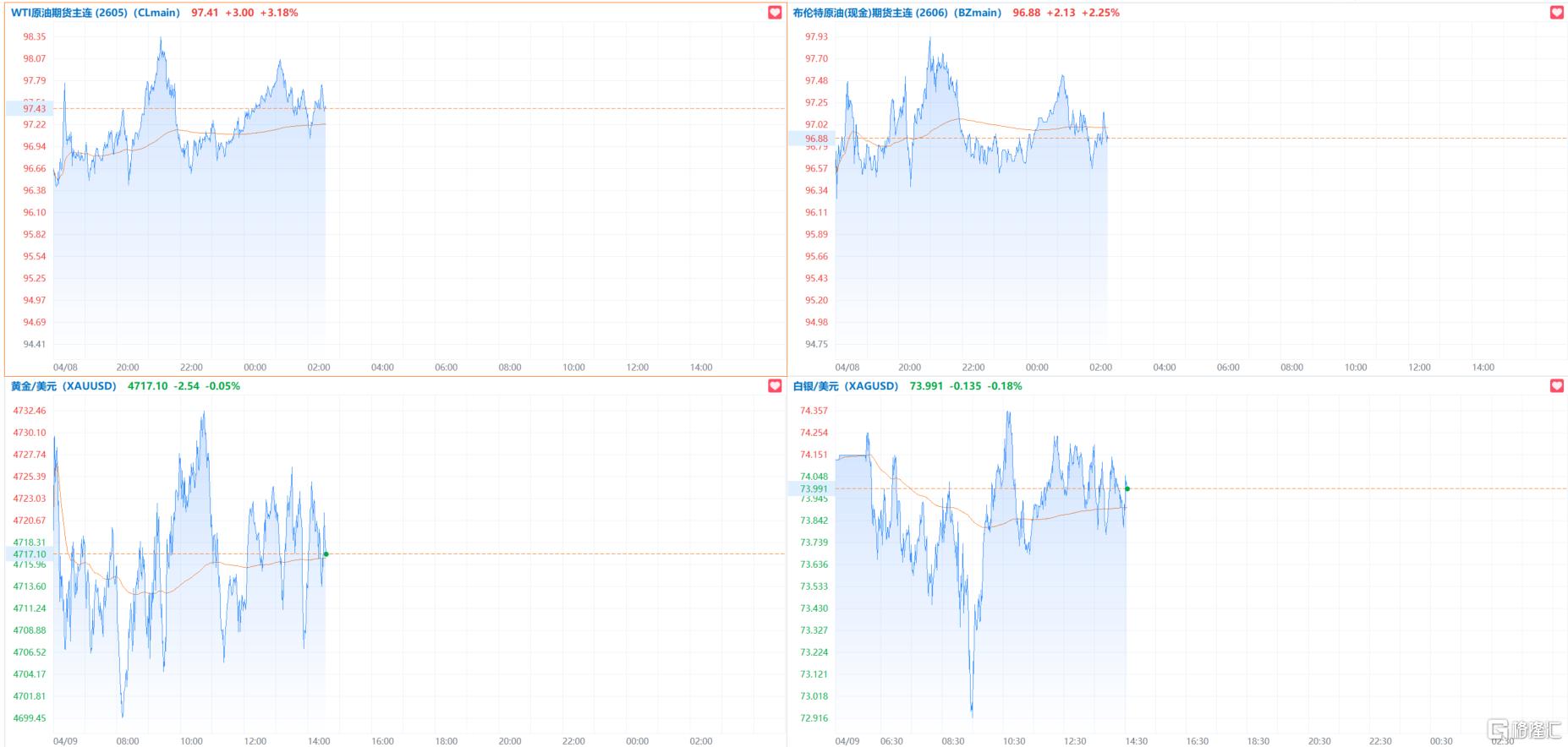 金银大幅震荡,现货黄金现跌0.05%向下触及4700美元/盎司;现货白银跌0.15%跌破74美元/盎司。
