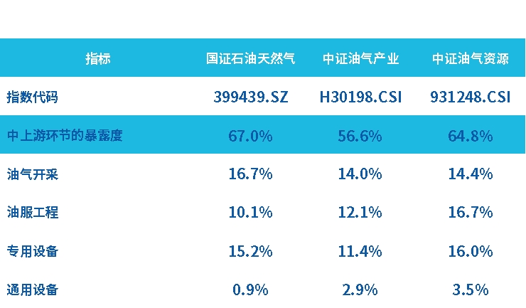 放在这轮行情里,市场关注点其实已经在悄悄变化。相比于笼统讨论“油气板块是否受益”,更值得进一步辨析的是:同样都属于油气指数,不同指数在产业链上的暴露方向并不相同,对高油价的映射效率也存在明显差异。有的更贴近中上游资源环节,盈利传导更直接;有的覆盖范围更广,表现则更容易受到中下游环节稀释。在油价上行阶段,这种结构差异往往会进一步放大到指数表现上。也正因如此,对中上游资源环节暴露更充分的指数,通常更能体现高油价环境下的受益特征。