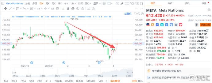 拉长时间线来看,自1月29日高点以来Meta股价持续走低,昨日大涨一举抹平了年内近一半的跌幅。
