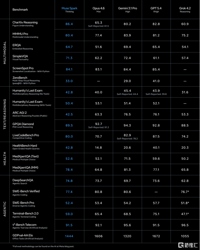 作为Meta迄今发布的最强模型,Muse Spark定位为原生多模态推理系统,在多模态感知、推理、医疗健康与智能体任务中表现极具竞争力。