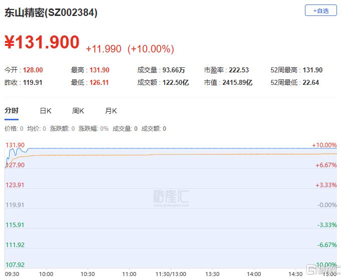 东山精密:今日涨停,全天换手率6.76%,成交额122.50亿元,振幅4.59%。龙虎榜数据显示,机构净买入2.38亿元,深股通净买入2.92亿元,营业部席位合计净买入2.99亿元。