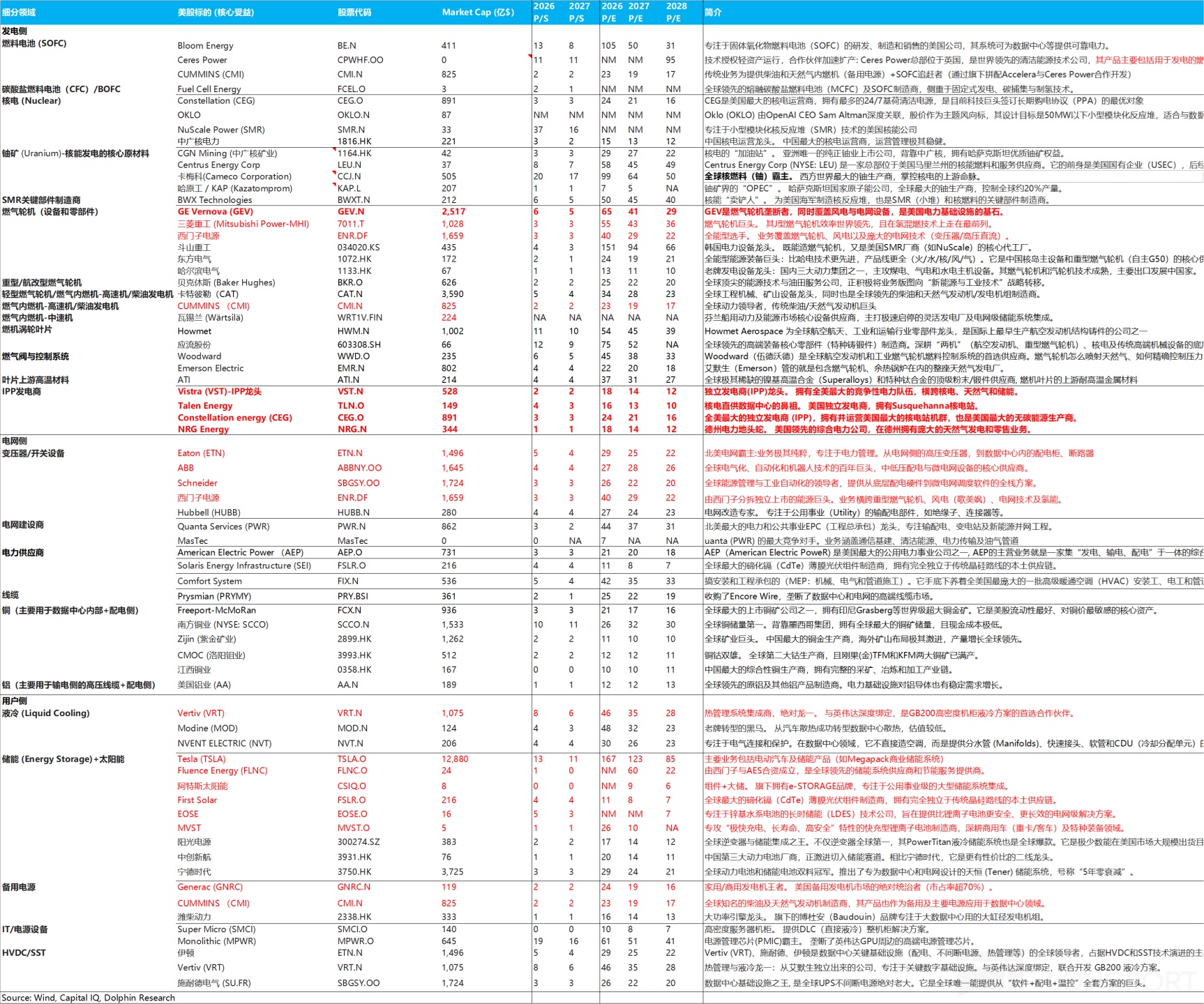 沿着上述产业脉络,海豚君已将核心受益标的汇总,具体公司与投资逻辑请参见《AI 电力与能源股单》。