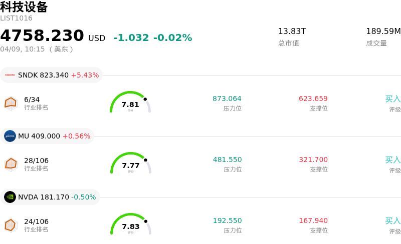 康宁 (GLW) 盘中上涨3.87%, 所属行业科技设备下跌0.02% ,公司涨幅跑赢行业涨幅,行业成交额前三股票 闪迪 (SNDK) 上涨 5.43%;美光科技 (MU) 上涨 0.56%;英伟达 (NVDA) 下跌 0.50%。