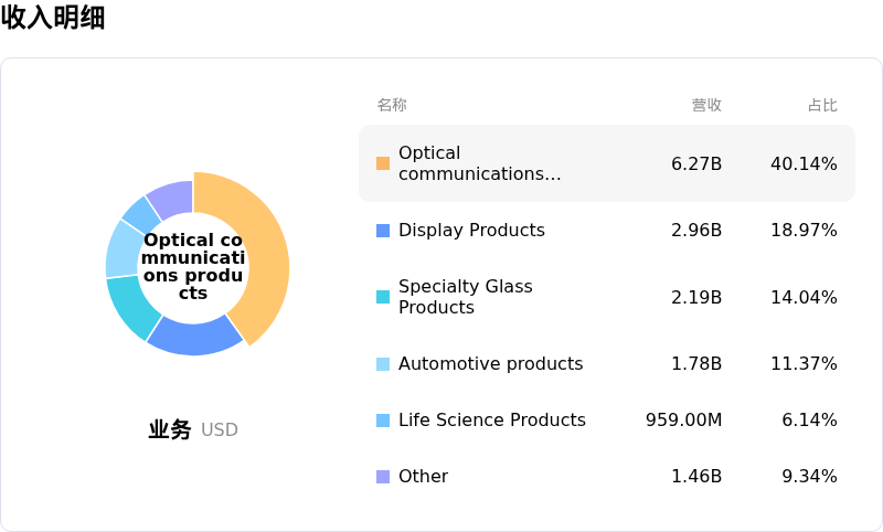康宁 (GLW) 处于科技设备行业,最新年度营业收入$15.63B,处于行业7,净利润$1.60B,处于行业3。「公司简介」