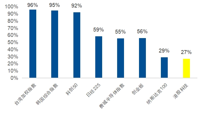 从估值角度来看,当前恒生科技已经回落至历史相对低位区间。纵向来看,截至3月31日,恒生科技动态市盈率为22.0,位于上市以来22%的百分位。市场对于宏观不确定性、AI盈利兑现节奏以及行业竞争的担忧,其实已经在很大程度上反映在价格之中。横向来看,恒生科技是全球主要科技类宽基指数中少数估值低于近5年30%分位数的资产,具有估值吸引力。换句话说,AI的长期逻辑没有变,但价格已经变得更友好。