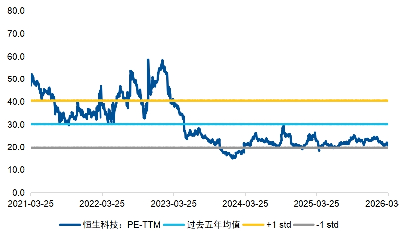 图:恒生科技估值再次接近近五年负一倍标准差的位置