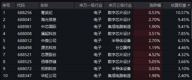 【科创芯片ETF汇添富(588750)标的指数前十大成分股】