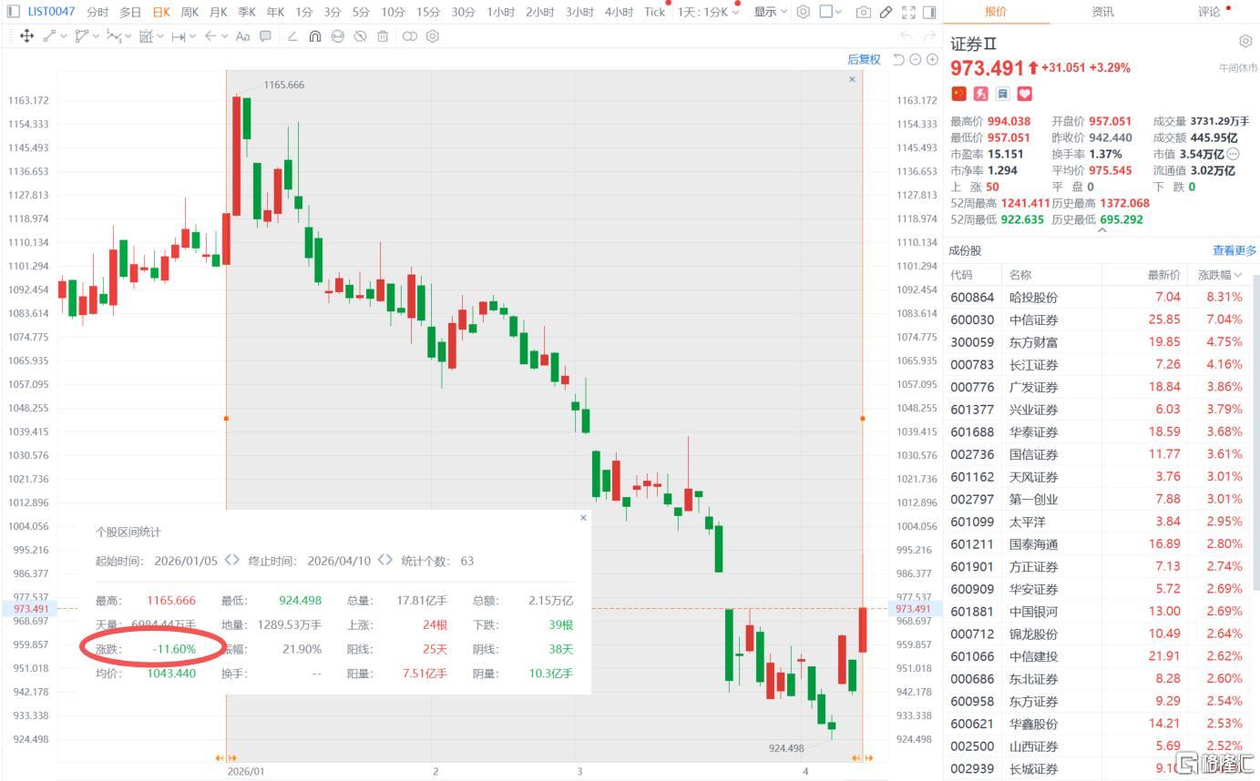 今年迄今,券商板块持续下行,年内累计跌幅超11%,持续跑输大盘。