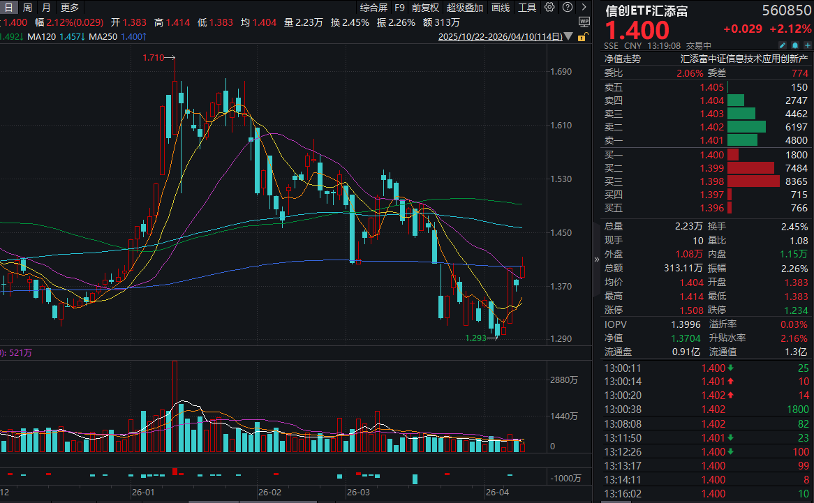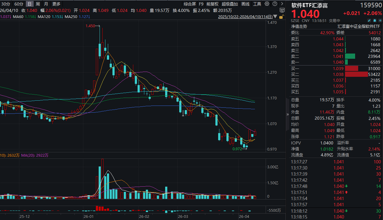 今日(4.10),A股计算机板块再度爆发,信创ETF汇添富(560850)放量大涨超2%!同赛道“AI应用”含量更高的软件ETF汇添富(159590)亦涨超2%,盘中成交额已超2000万元。