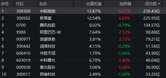 截至收盘,云计算ETF汇添富(159273)标的指数热门成分股中,中际旭创、新易盛涨超6%,浪潮信息涨超3%,阿里巴巴-W、中科曙光涨超2%。