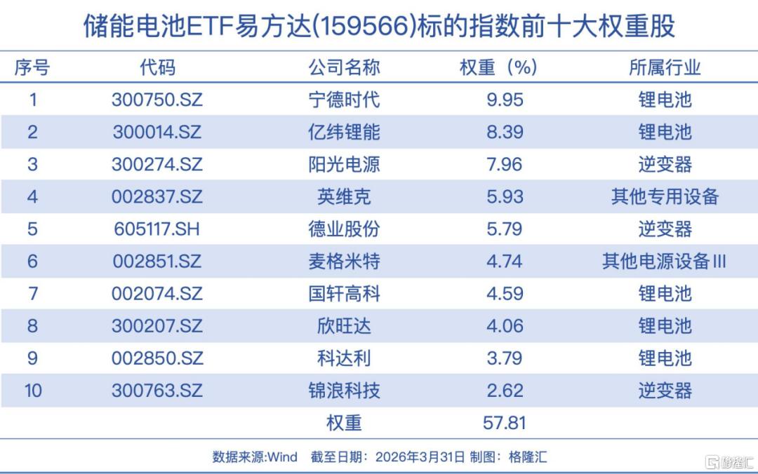 储能电池ETF易方达(159566)是全市场规模最大的聚焦储能核心贝塔的ETF产品;其覆盖储能电池核心环节,包括电池制造、储能系统集成、液冷、逆变器等环节,联接基金(A/C:021033/021034)。