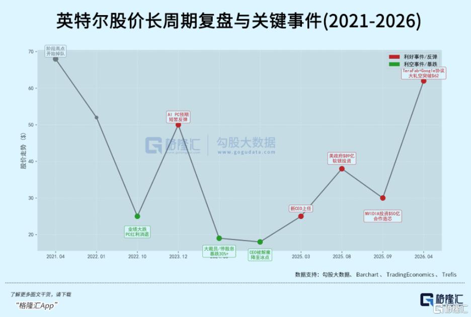 英特尔的股价从$18到$62,反弹分了两波。