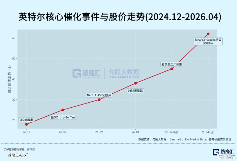 七个交易日,英特尔股价就从$40直冲$62,暴涨近50%。