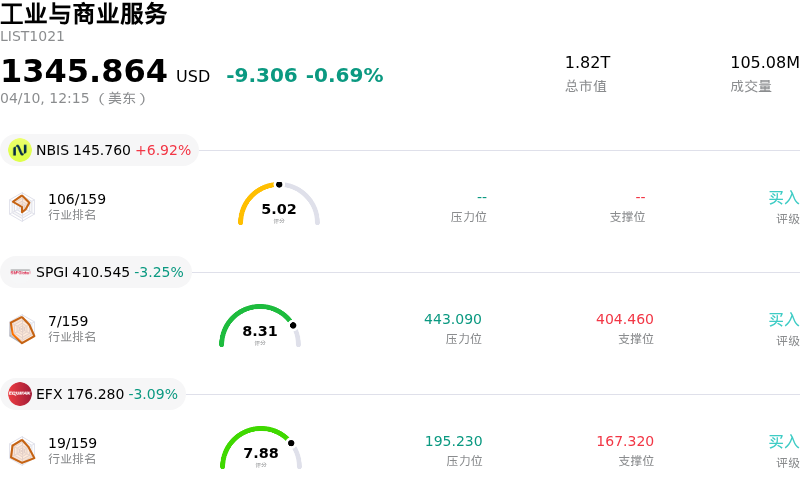 标普全球 (SPGI) 盘中下跌3.25%, 所属行业工业与商业服务下跌0.69% ,公司涨幅跑输行业涨幅,行业成交额前三股票 Nebius Group NV (NBIS) 上涨 6.92%;标普全球 (SPGI) 下跌 3.25%;Equifax Inc (EFX) 下跌 3.09%。