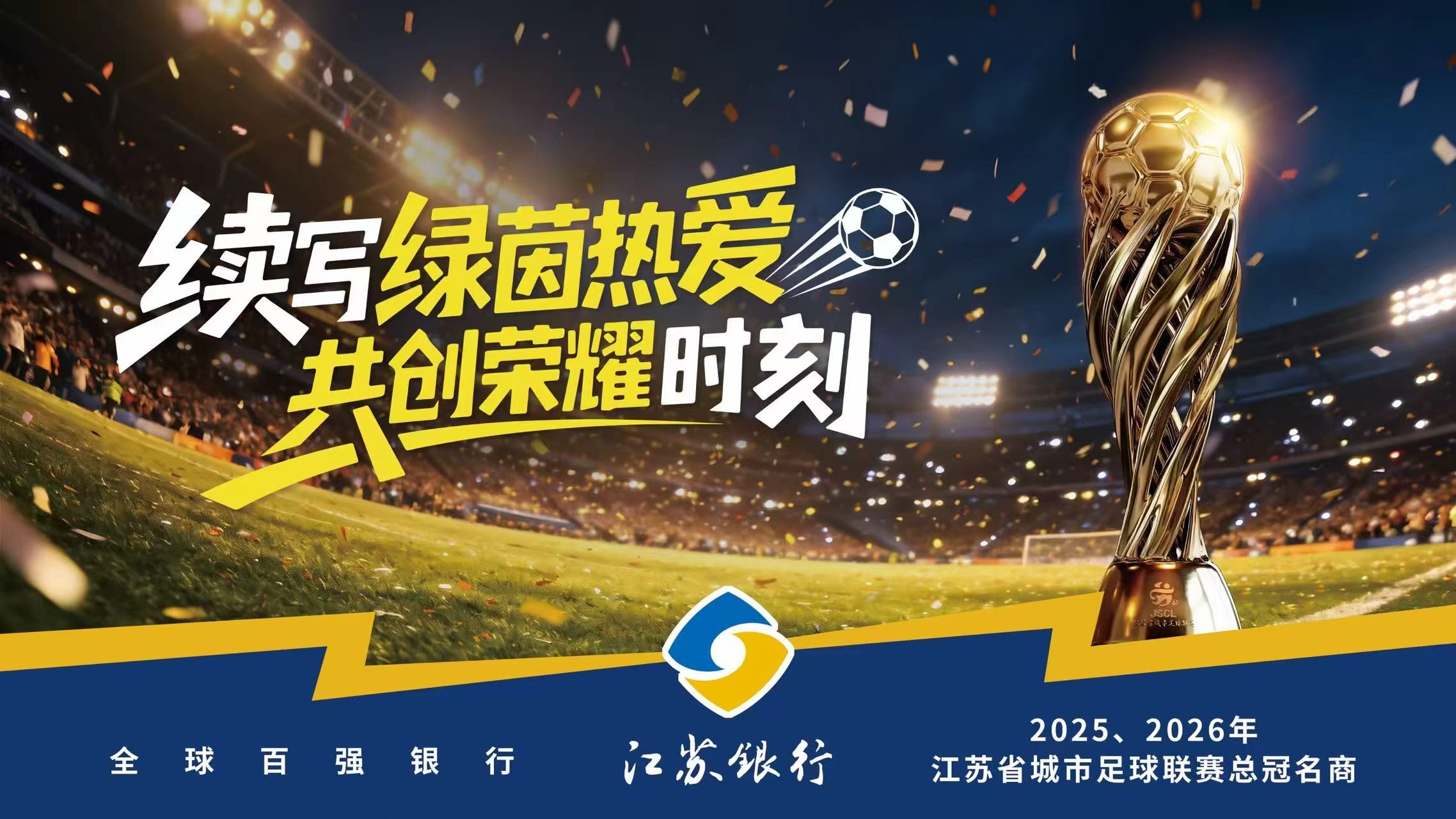 2025年“苏超”,从揭幕战的风云际会,到冠军之夜的巅峰对决,243万现场观众、22亿线上直播观看的视线中,都有江苏银行的温暖陪伴。而今战火重燃,江苏银行再度携手“苏超”,作为总冠名商之一,发布品牌口号——“续写绿茵热爱 共创荣耀时刻”。这句话,不仅是赛场广告牌上的标语,更是江苏银行秉持“融创美好生活”的使命,将支持“苏超”赛事作为落实扩大内需战略、促进消费提振、推动文体旅商融合的重要抓手,以金融之力守护热爱、陪伴奋斗,与城市、与奋斗者一同书写全新篇章。