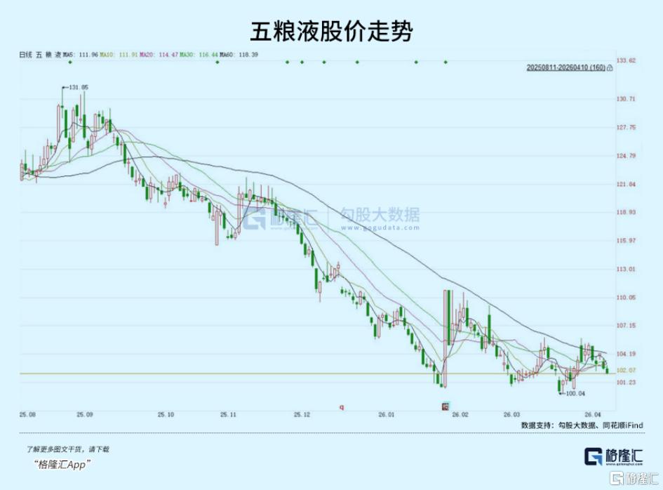 而上一次五粮液股价跌至100元以下,还是在2024年的9月。