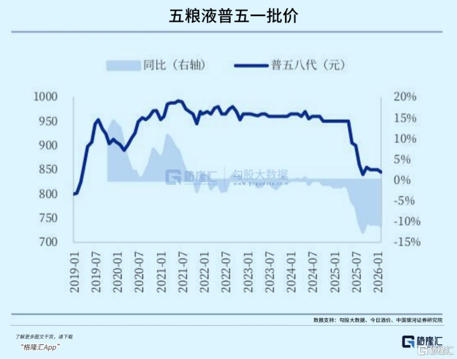 行业角度,高端与大众价位动销略有起色,但次高端持续承压,而五粮液普五恰好处于承压最重的千元价格带,短期内仍难看到根本性好转。