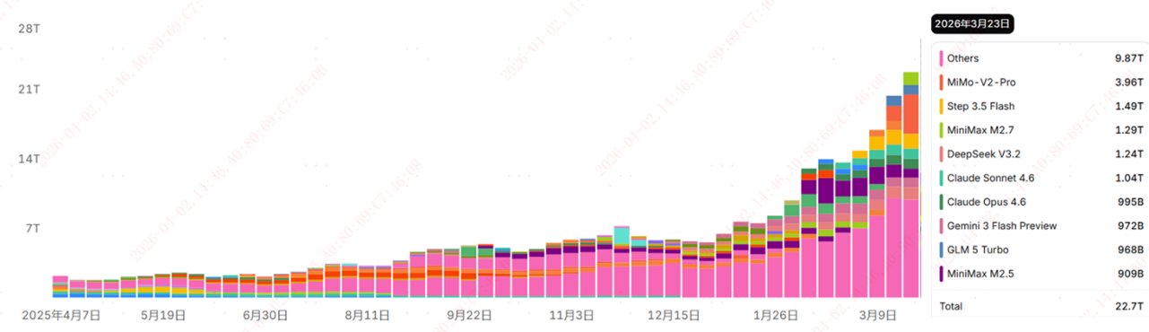 资料来源:Open Router,最新周度数据为2026年3月23日至3月29日