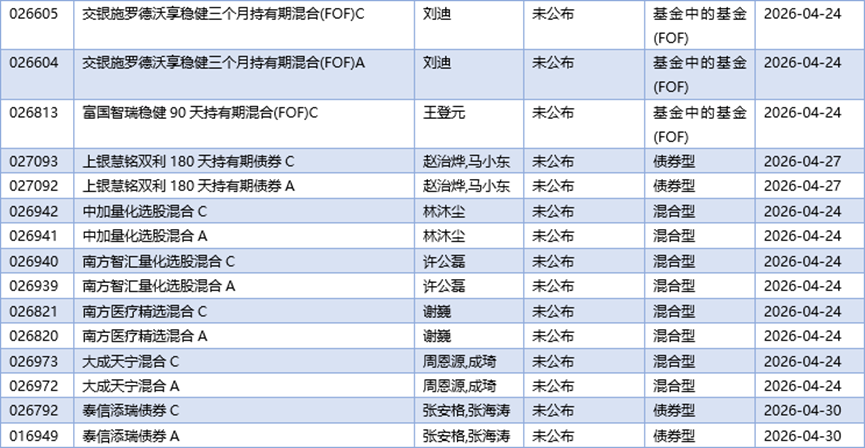 三、04月13日新发基金一览(不包含传统封闭式基金)