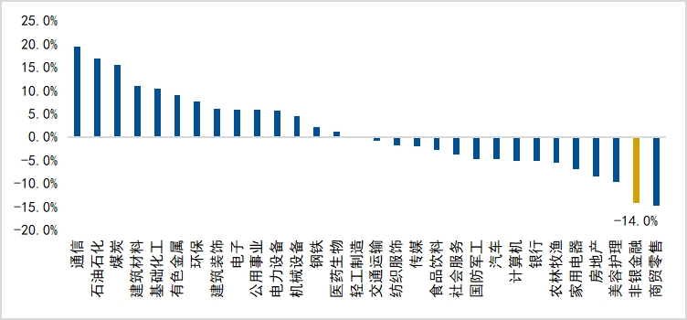 图:2026年年初至4月9日各申万一级行业的涨跌幅