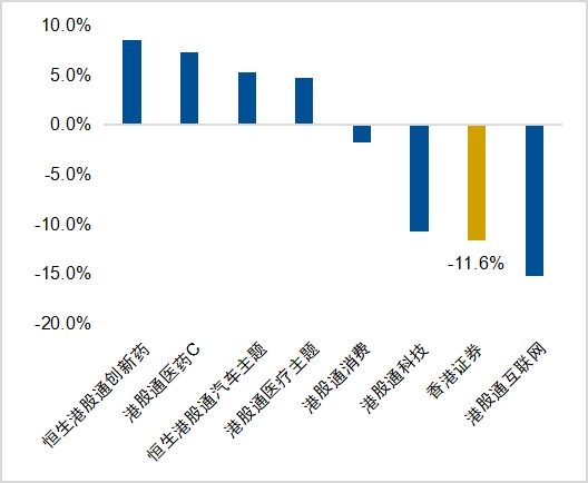 图:2026年年初至4月9日港股代表性行业主题指数涨跌幅