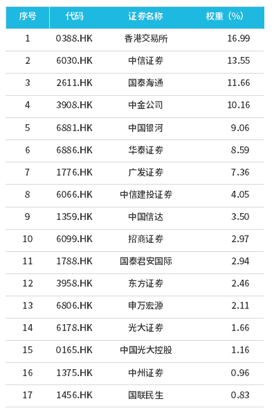 表:香港证券指数持仓集中,覆盖港股券商龙头