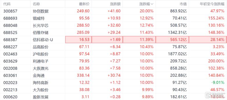 A股存储芯片股大爆发,协创数据、沪电股份、大族激光、大为股份、盈新发展等多股涨停;佰维存储、德明利盘中股价创历史新高。
