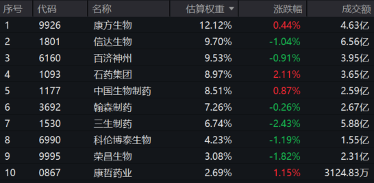 港股通创新药ETF汇添富(159570)标的指数热门成分股涨跌互现:石药集团涨超2%,康哲药业涨超1%,康方生物、中国生物制药微涨。