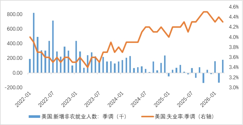数据公布后,黄金按传导逻辑出现短期承压,市场快速消化这一利空信息后,金价迅速企稳反弹并走出深 V 形态,凸显出黄金的强韧性。需明确的是,单月非农数据的反弹是短期波动表现,美国就业市场整体趋差、失业率上行的大趋势并未改变,这一背景下,黄金中期核心驱动逻辑依然稳固,短期波动反而有望为长期配置提供了优化节奏的机会。