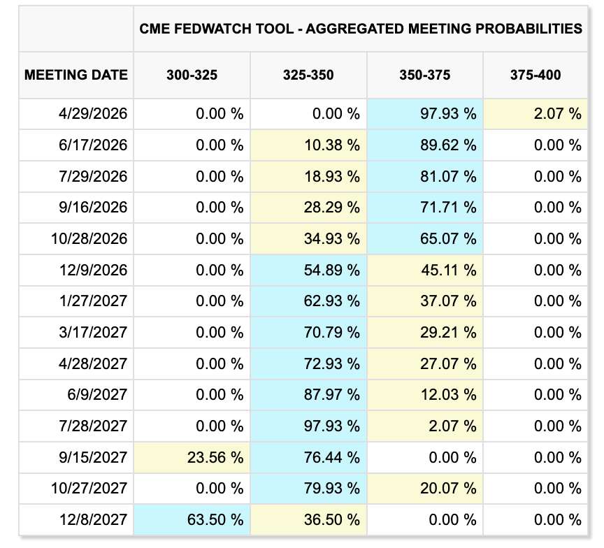 数据来源:Wind、CME FedWatch Tool(基于美联储基金期货测算市场对未来加息或降息次数及节奏的定价预期),2026/4/8